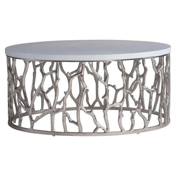 - Branches intertwine around the base of this beautifully natural cocktail table.