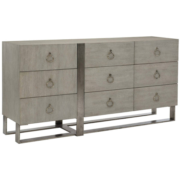 - An asymmetrical form gives the nine-drawer Linea dresser its singular look.