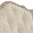 - Wood frame with inset upholstered outside and inside back, with button tufting on inside. Welt trim on inside and outside back.