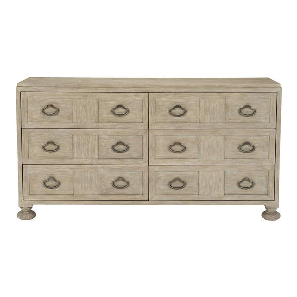 - Inspired by Californias laid-back vibe, the Santa Barbara dresser features wire-brushed, cerused oak veneers with subtle textures and light strokes of color in the grain.
