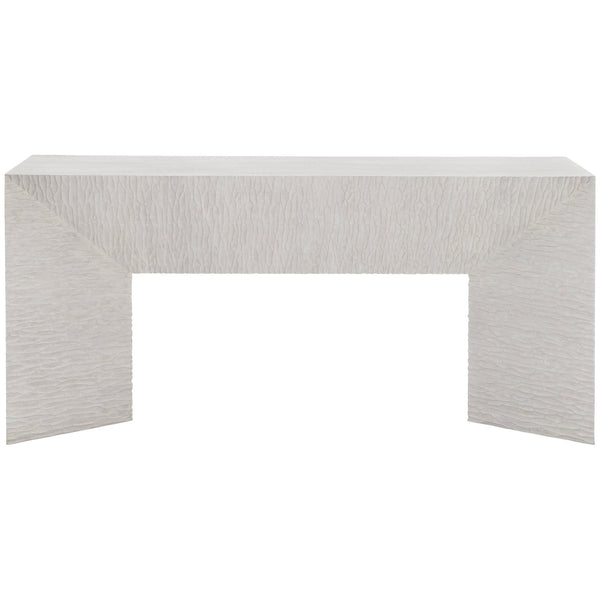 - Appearing as if it were carved directly from a block of white stone, the Solaria console table offers simple lines elevated with a textural surface.