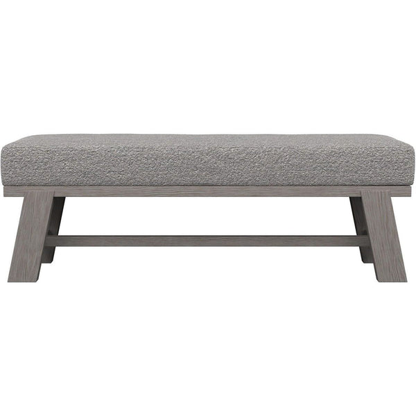 - Clean lines highlight perfectly balanced proportions on an upholstered bench.