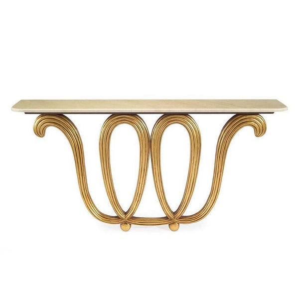 - Inspired by the designer Borsani, the base is a carved and reeded series of loops, which support the Crema Marfil marble top.