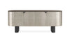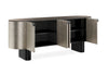 - If you are looking for a slim media console with dramatic appeal, meet Gustav. The elongated oval chest sits atop Deep Bronze elongated cylindrical legs. Finished in Charcoal Leaf, four doors with triangular Deep Bronze pulls open to an Almost Black interior with four adjustable shelves and wire management access. The piece’s top is Smoked Bronze glass.