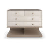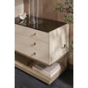 - Adding to its allure: a Smoked Bronze glass top and tactile hardware in Brushed Gold metal.