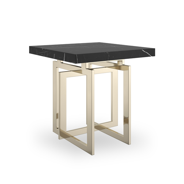 "Crafted with a striking black marble top resting atop a refined Whisper of Gold base, the Wish You Were Here Square Side Table effortlessly combines luxurious materials and timeless design, perfect for sophisticated interiors."
