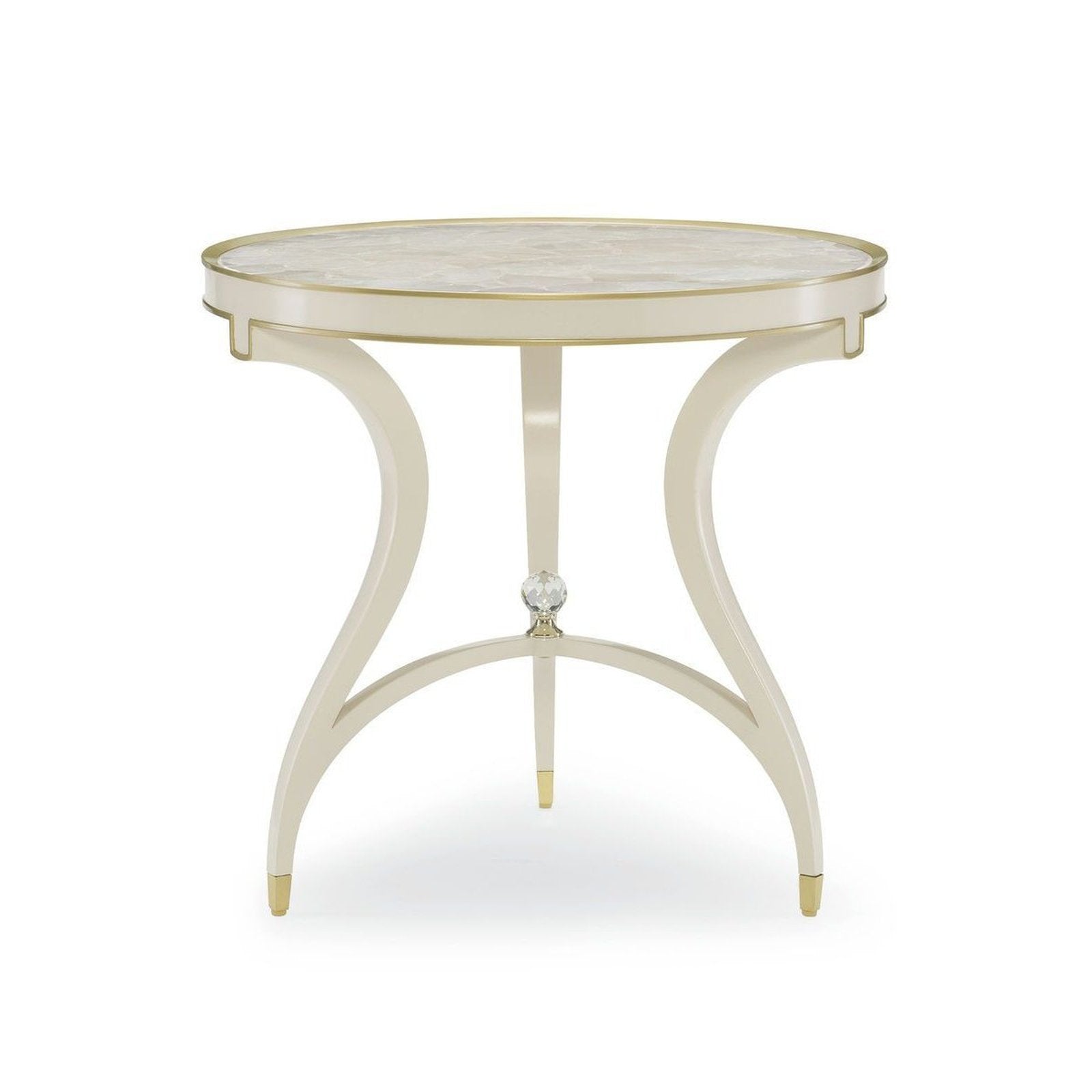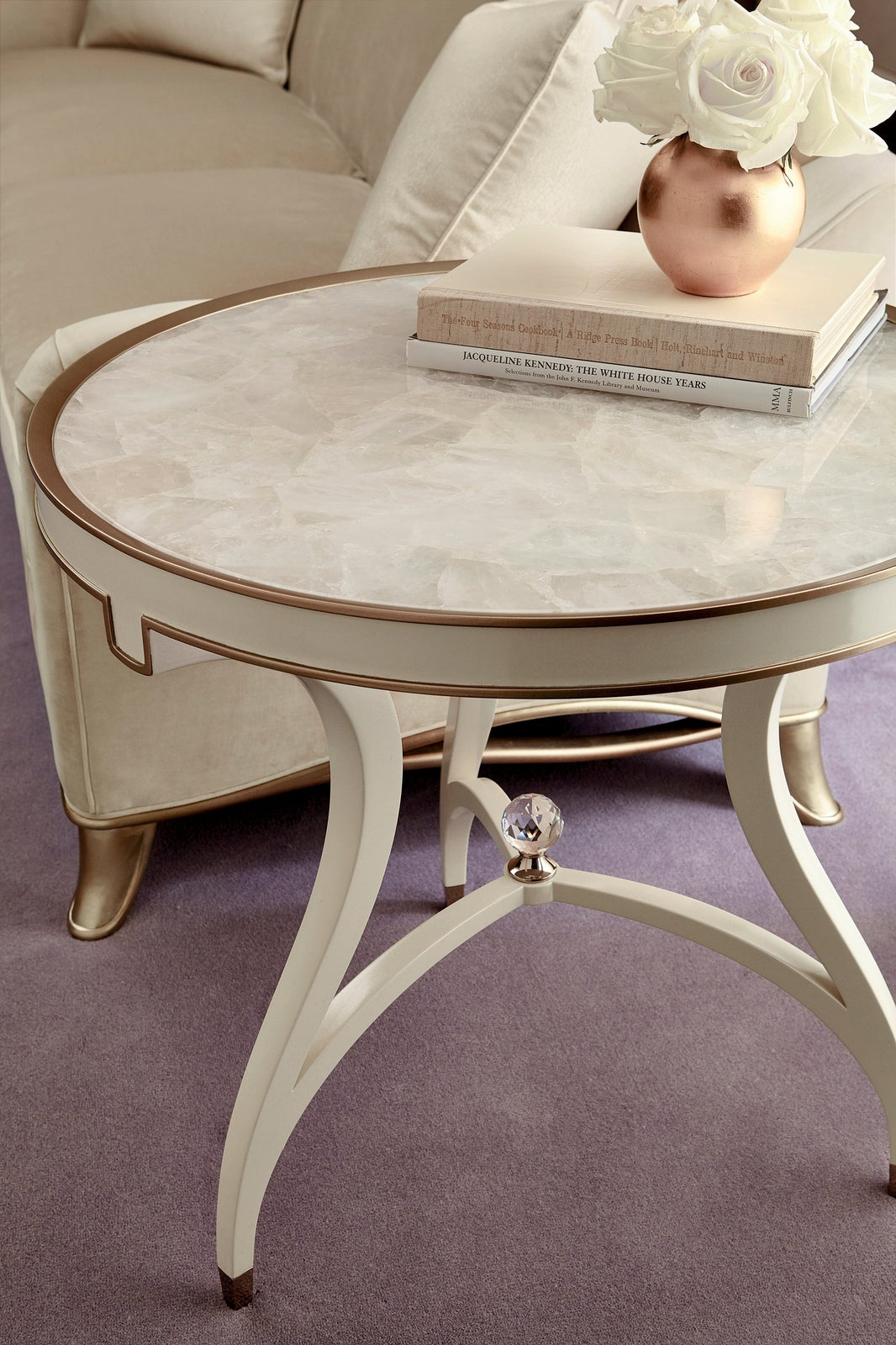 - Its beautiful white crystal stone top is offset by a base in Creme De La Creme that is trimmed in Gold Bullion Leaf.