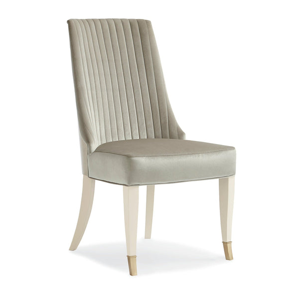 - Comfortable yet confident, its elegantly tailored seat and inside back are upholstered in a luxurious neutral fabric that exudes glamour.