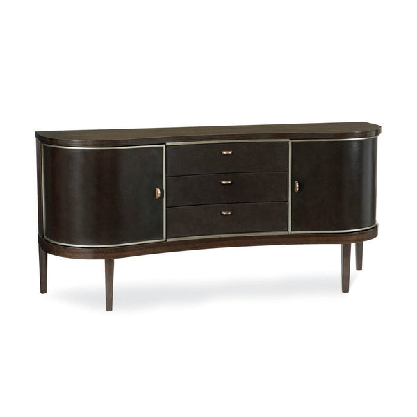 - Three concave center drawers complete the graceful flow of this sideboard.