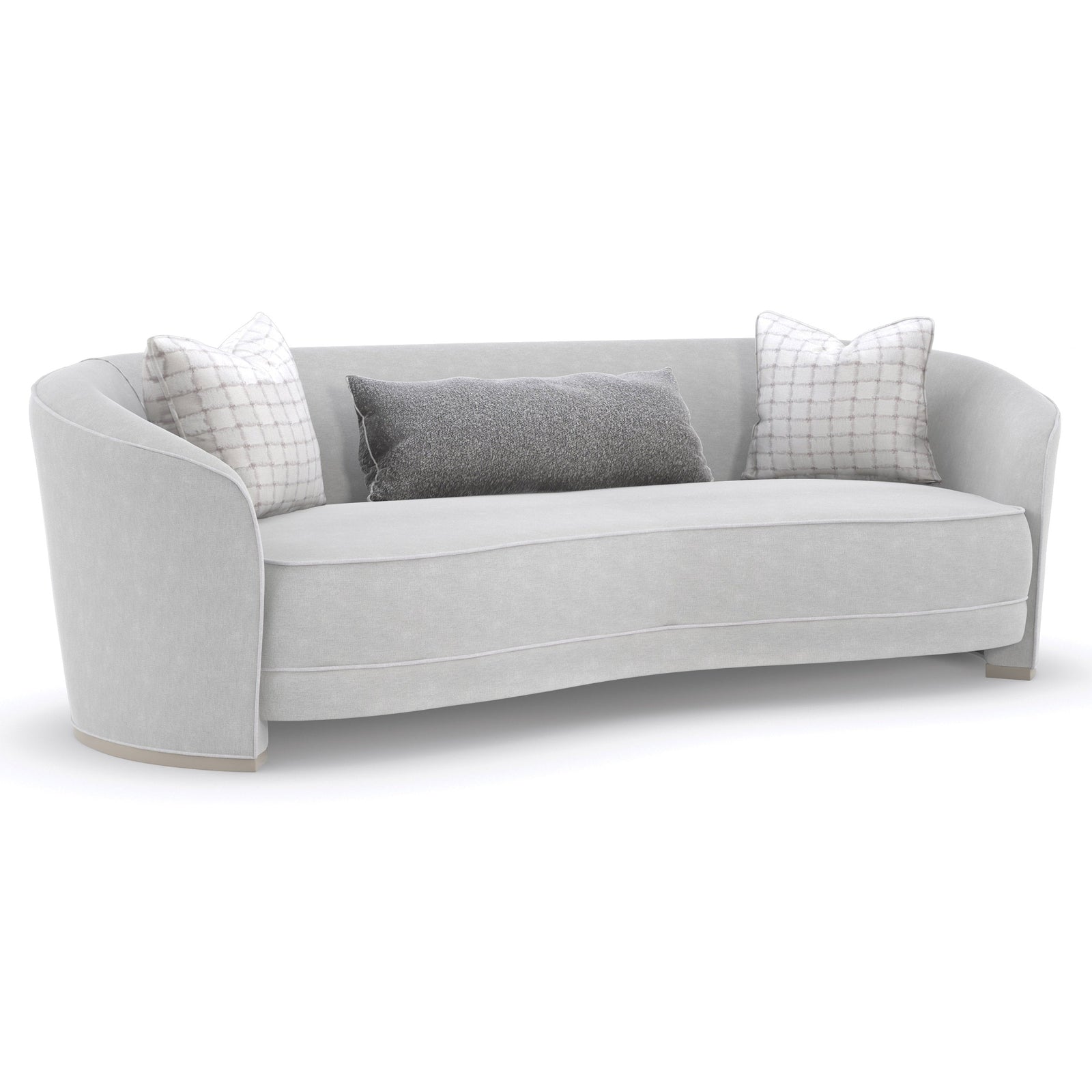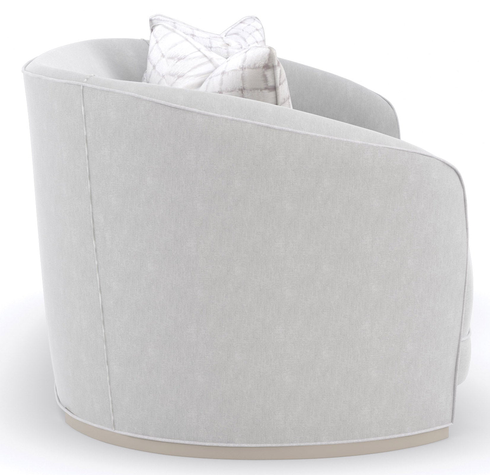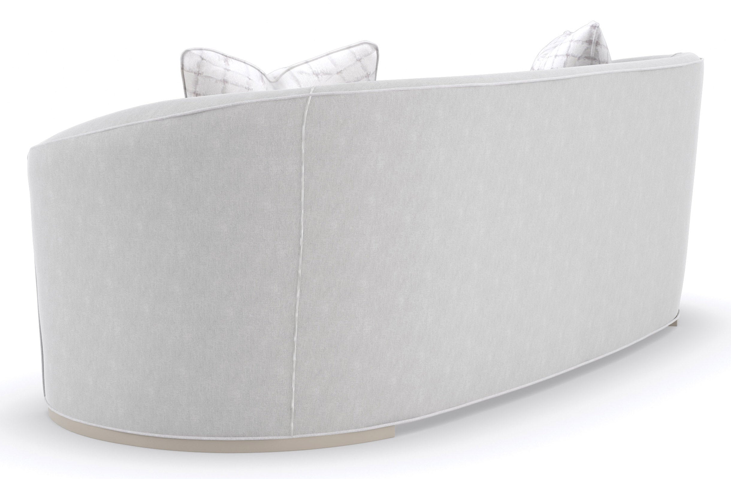 - Its subtly curved back and bowed bench seat are hand-tailored in a micro-chenille performance fabric, woven with metallic thread for a hint of shimmer.