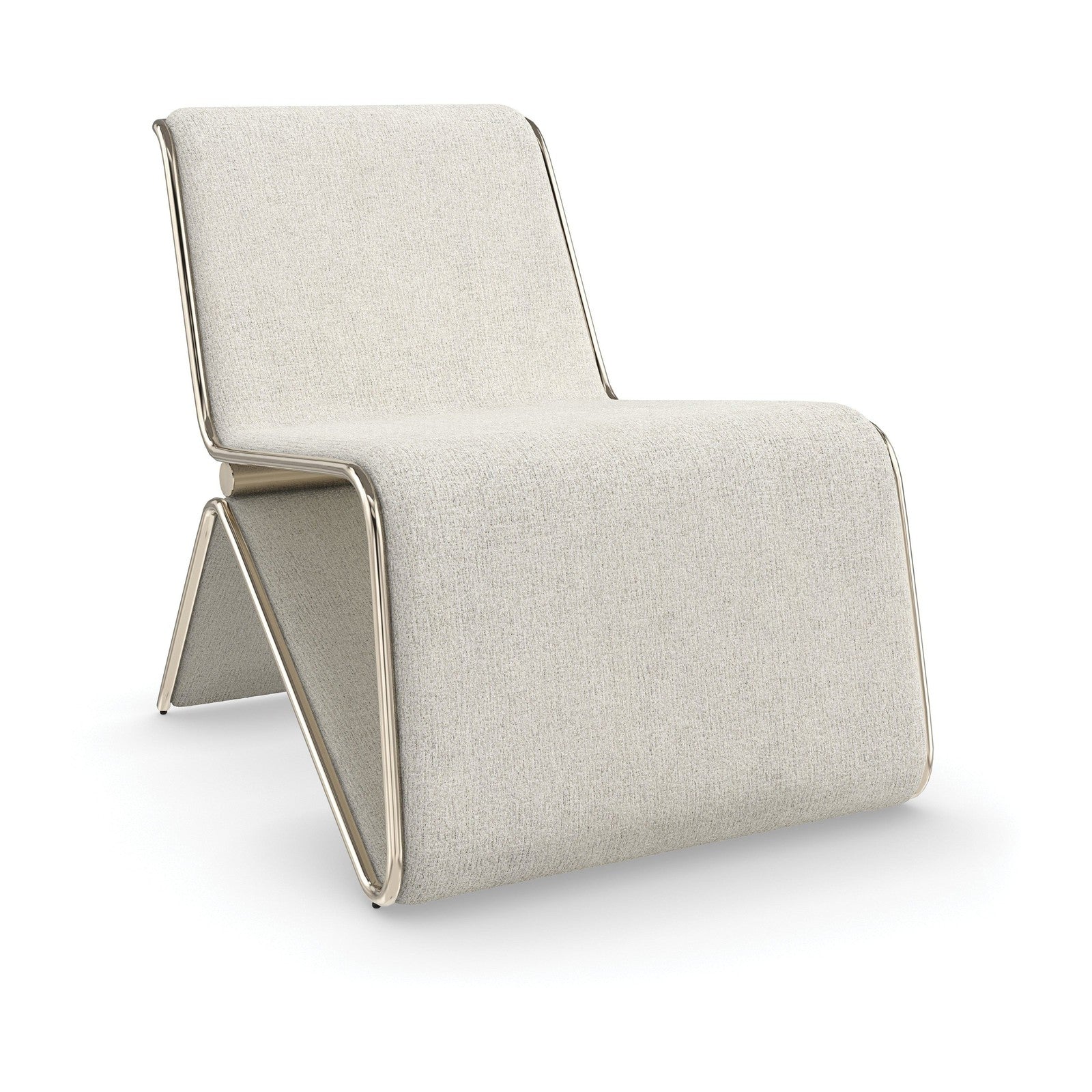- Relaxed yet refined with a lounge-like aesthetic, its subtly curved back and seat are warmly defined by a tubular metal frame finished in a Whisper of Gold.
