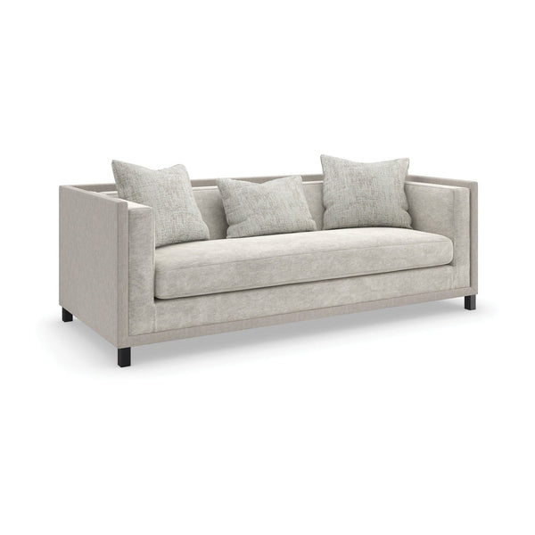 - With clean lines and crisp tailoring in a fresh neutral hue, this classic shelter arm sofa is inspired by modern takes on the iconic tuxedo.