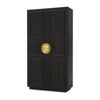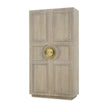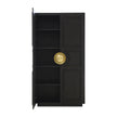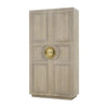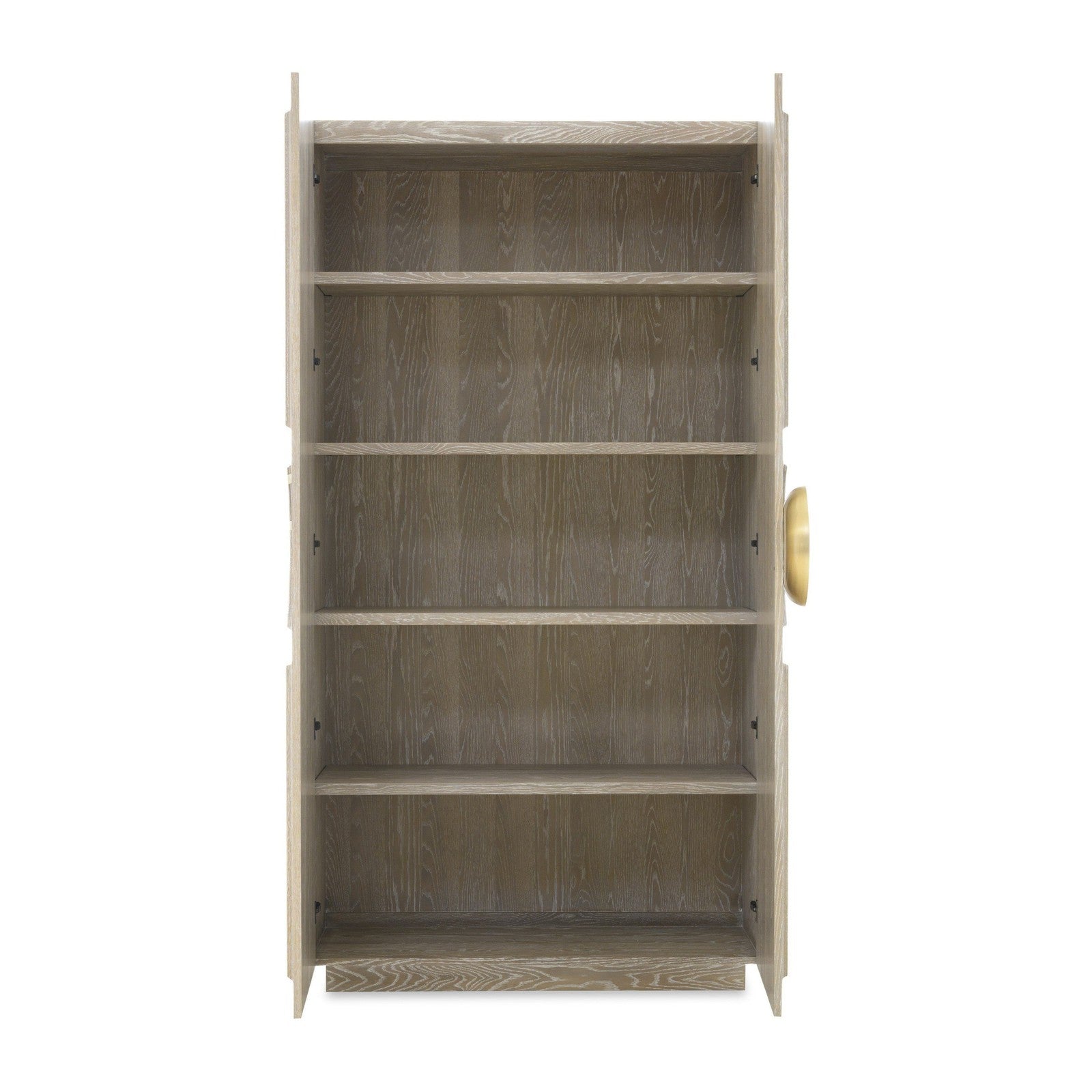 - Behind two doors with antique brass hardware is four adjustable shelves