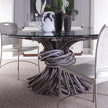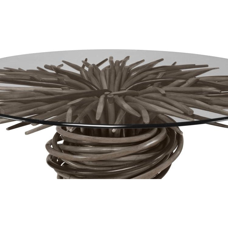 - Re-enforced by hidden metal rods, this beautiful, organic knot topped with a bevel edge glass top makes a wonderful breakfast room table or a statement foyer entry piece.