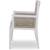 - Mahogany solids in an off-white finish with flax colored upholstery