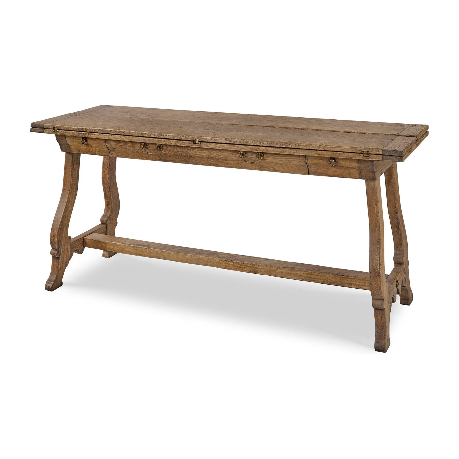 - The Manning Flip-Top Console Table is crafted of Oak solids and veneer in a French Dry Oak finish.