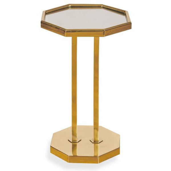 - The Octagon Side Table is a polished brass drinks table featuring a double stemmed base and octagonal top and base with clear mirror insert.