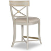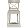 - The Audrey counter stool is a delicately scaled stool that features soft grey paint with subtle hints of gold leaf to accent the raised moldings and rosette of the "X" patterned back.