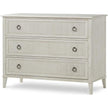 - Design features include picture framed drawers centered with a carved, reeded design, tall tapered legs, pewter ring pulls and soft close drawers.