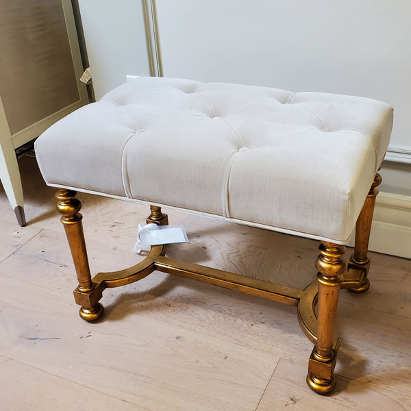 - The Hughes Bench features turned trumpet legs and bun feet finished in a gold leaf finish.