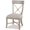 - Finished in a distressed Swedish worn grey paint the "X" back is adorned with gold leaf highlights while the seat is upholstered in a textured linen fabric.
