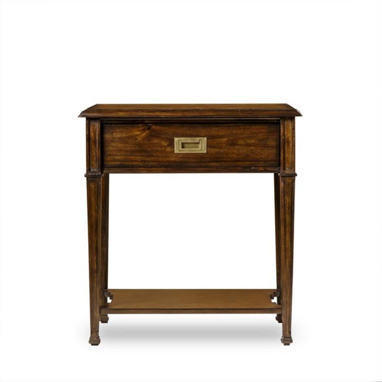 - The Southport Nightstand is a classic form featuring long tapered legs, lower shaped shelf and a narrow drawer trimmed with campaign styled hardware.