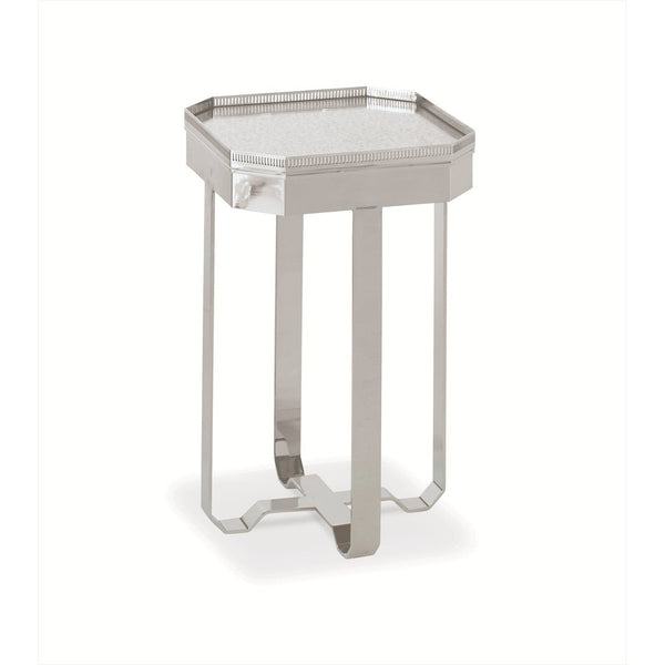 - Polished nickel frame with gallery edge surrounding antique mirror top.