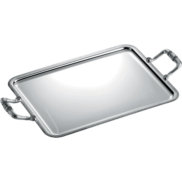 - This large silver plated rectangular tray with two handles in the Malmaison pattern is ideal for beverage service or tray-passed appetizers at an event