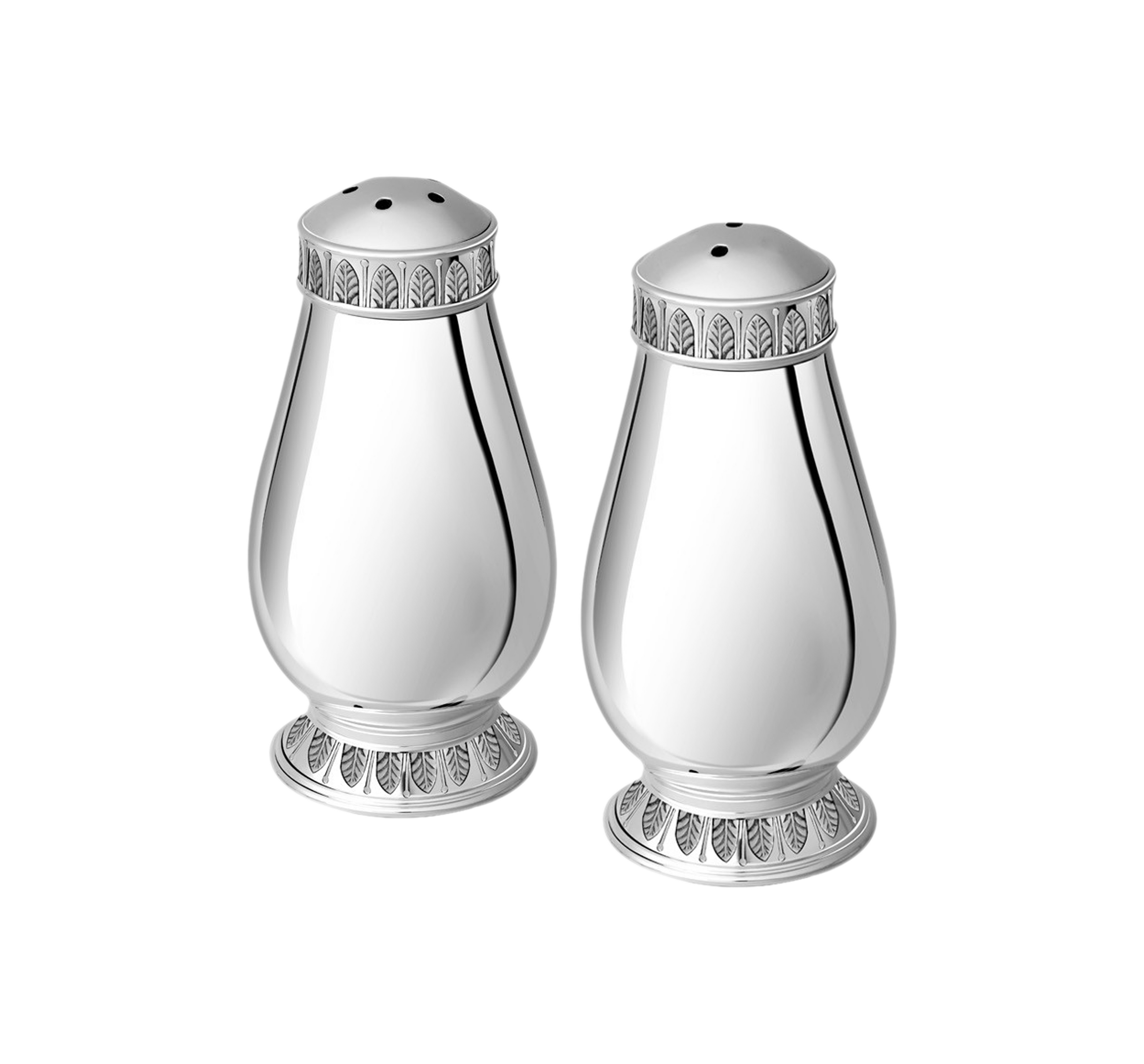 - Salt and pepper shaker set Malmaison Silver platedSilver-plated salt and pepper shakers in the Malmaison pattern