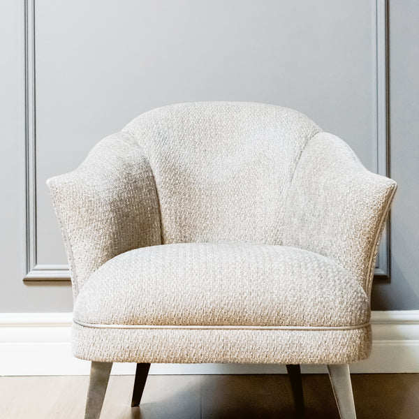- A lounge chair that encapsulates elegance and glamor with understated charm. The gentle feminine curves of the back flow seamlessly into the outwardly curving arms. setting.