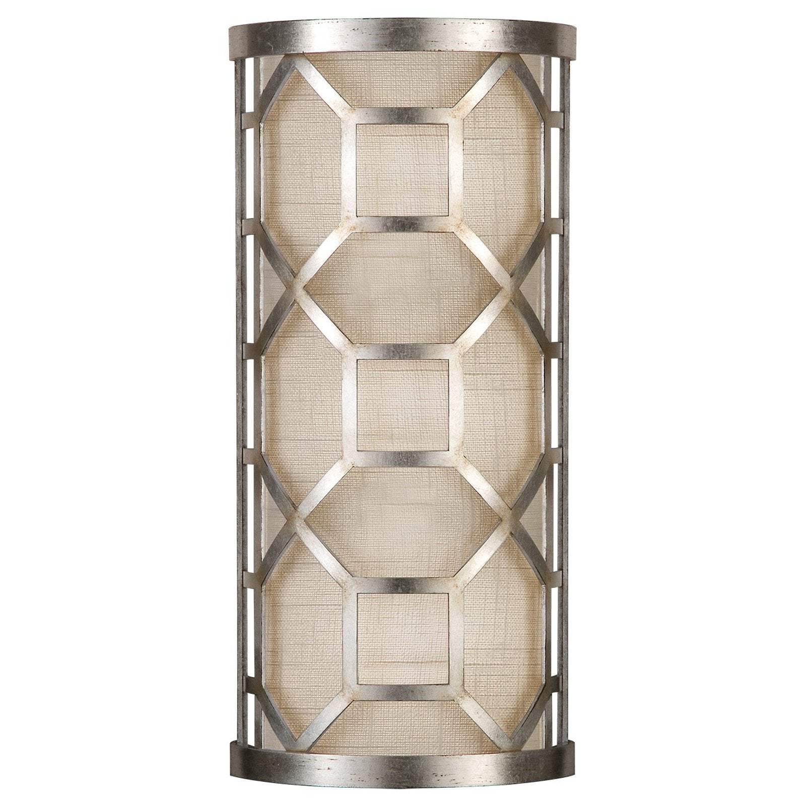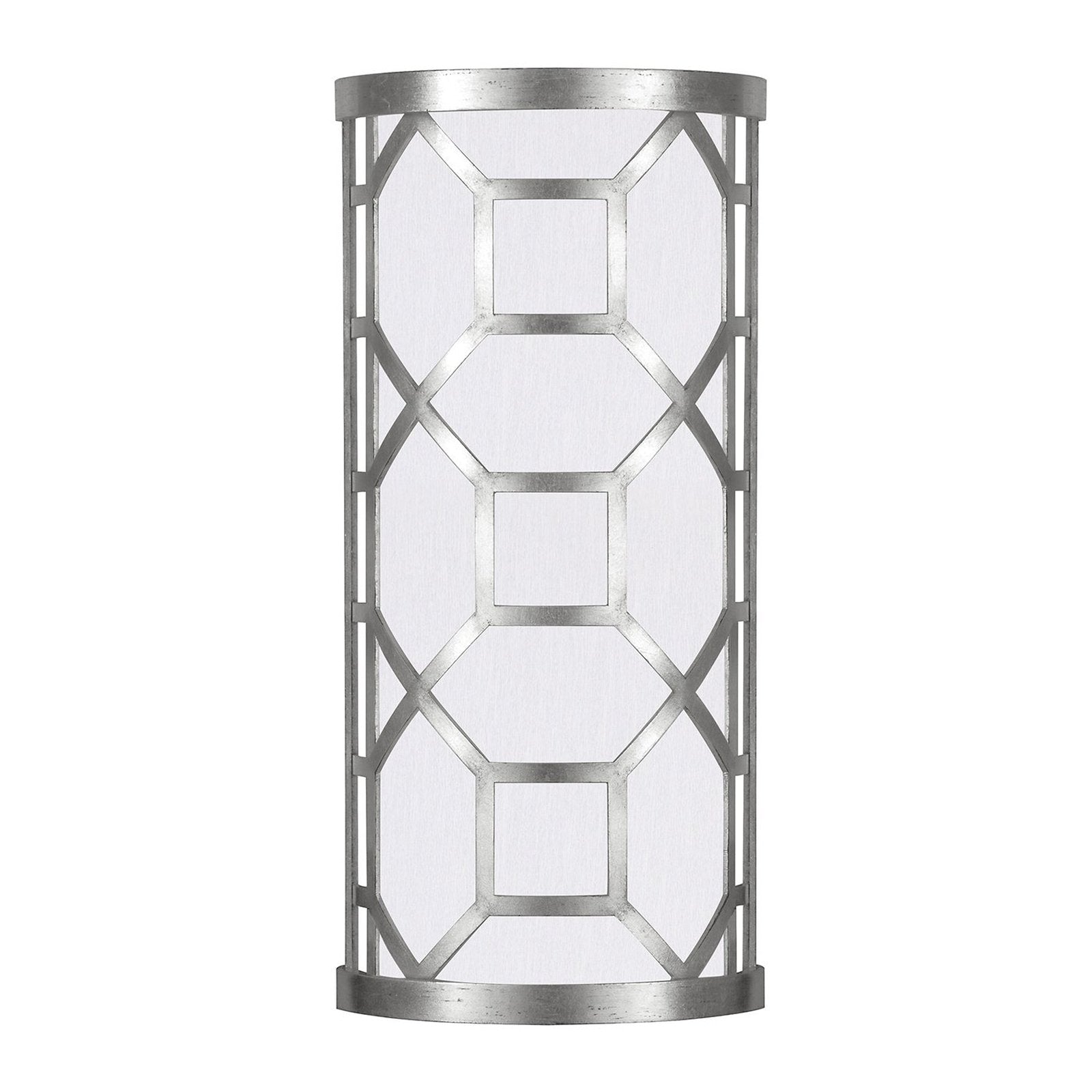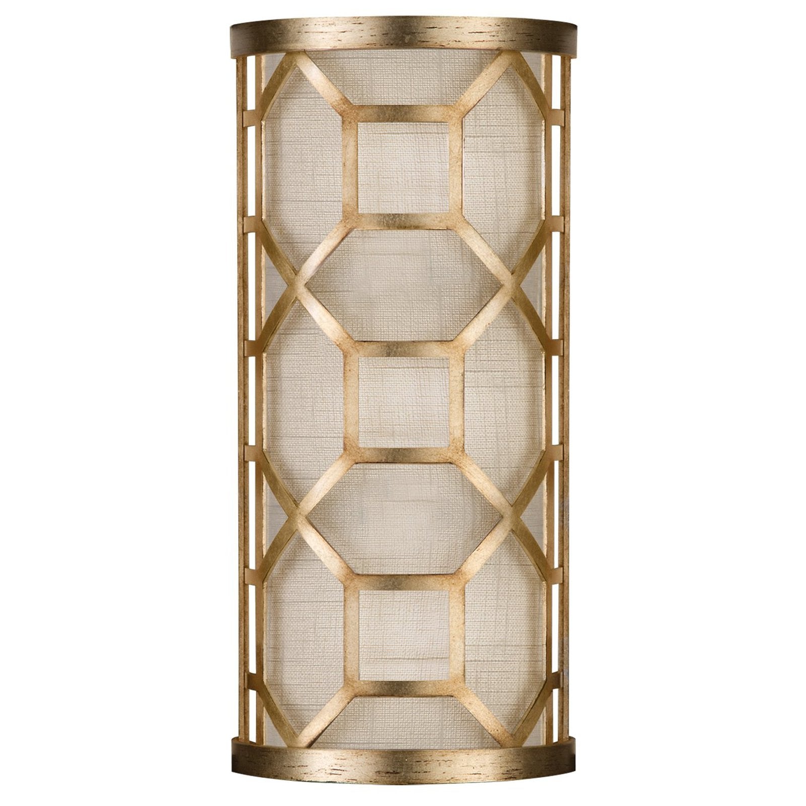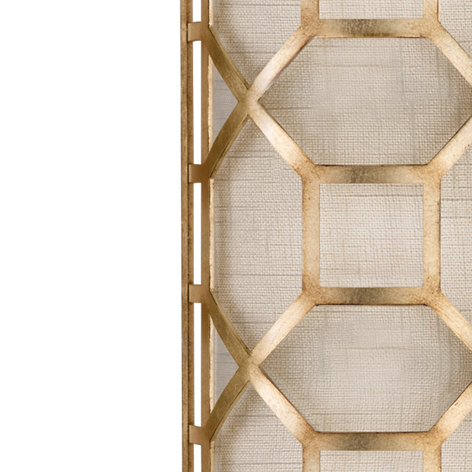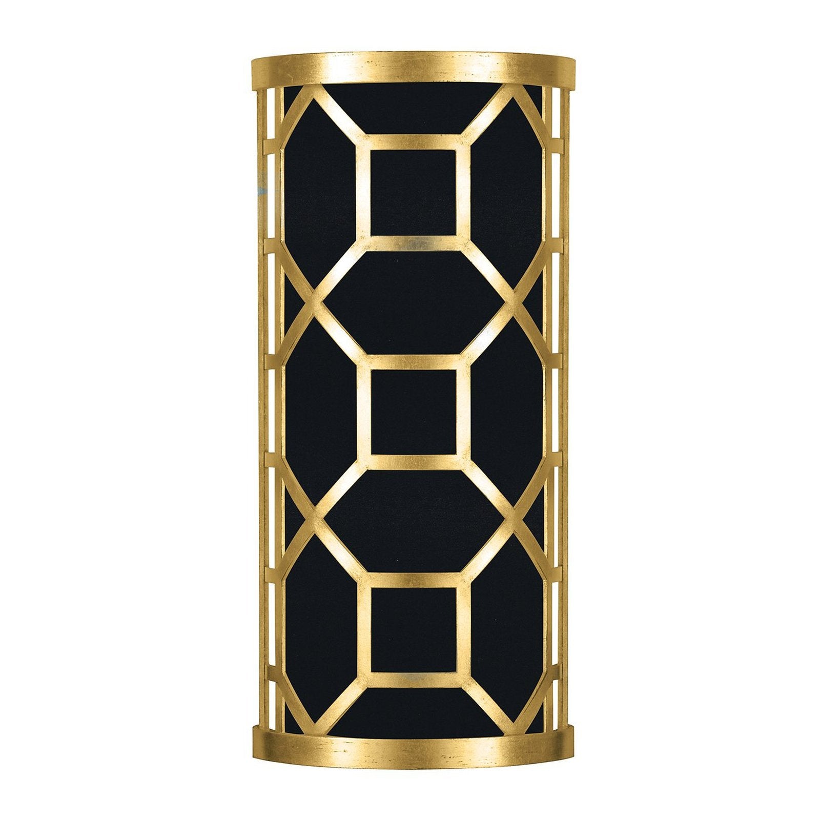 - Sconce in a gold / Silver leaf finish with champagne / Black / White fabric shade.