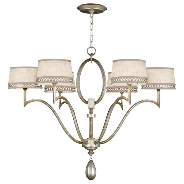 - Chandelier in a gold / Silver leaf finish with champagne / Black / White fabric shade.