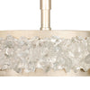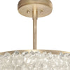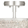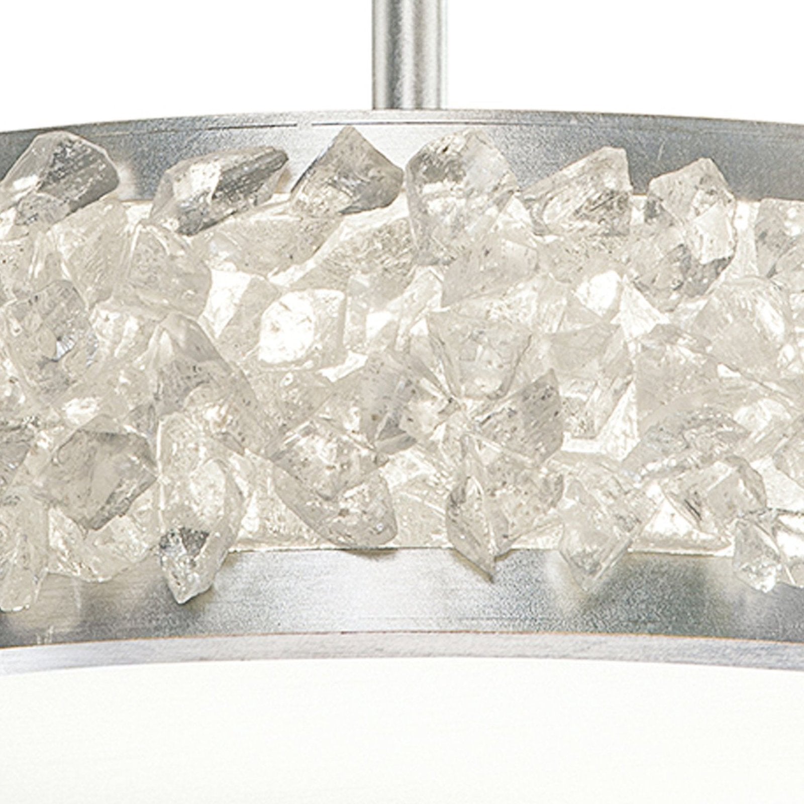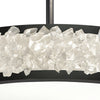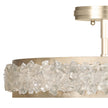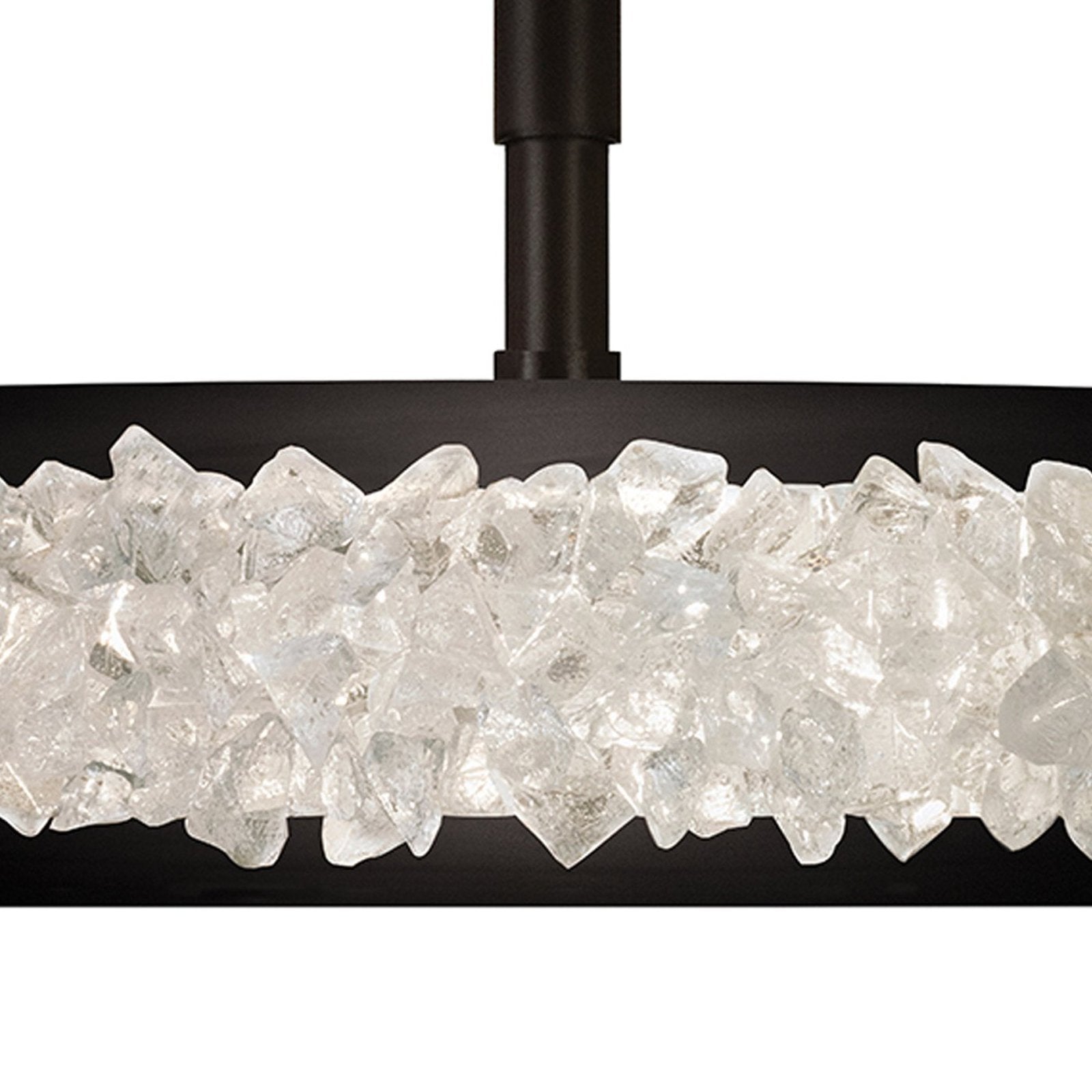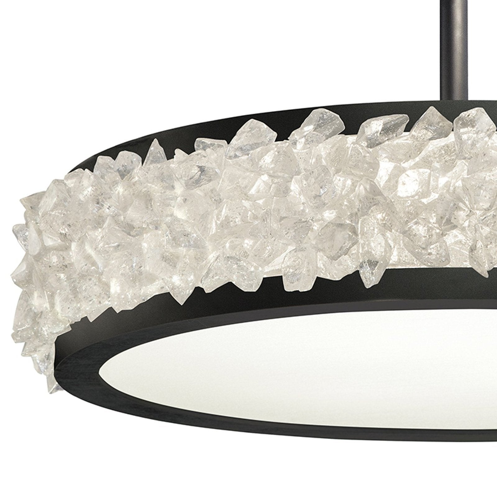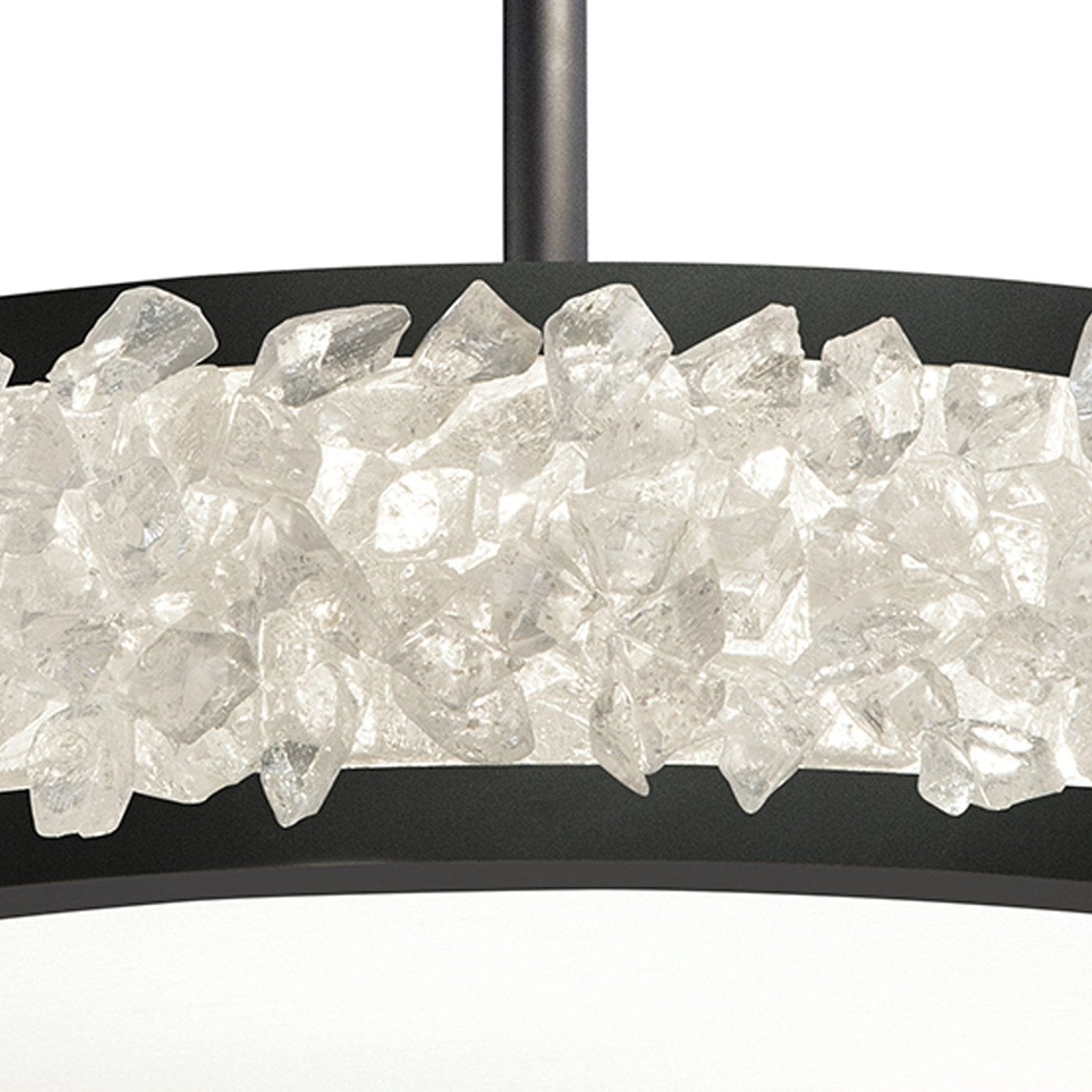 - Semi-flush in a matte black / champagne tinted gold leaf / platinized silver leaf finish featuring hundreds of rough cut crystal glass gems that refract light in a manner reminiscent to the cirrus clouds ice crystals that form the lunar halo in the frozen night sky.