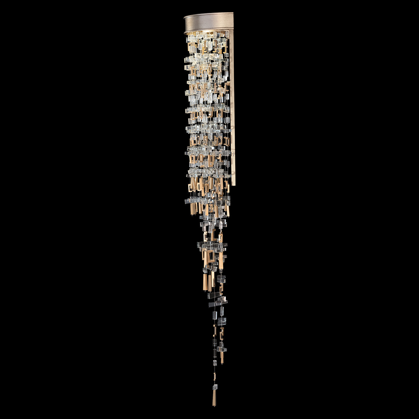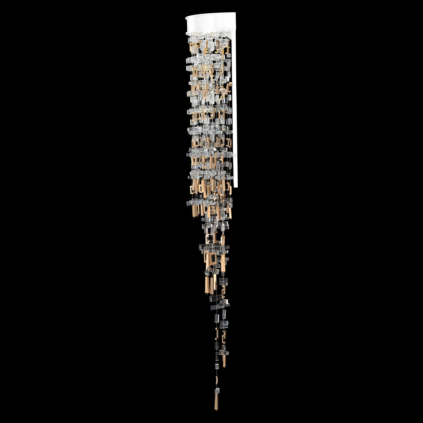 - A symphony of precision-cut crystals, interspersed with brass elements, are set horizontally and vertically to enhance their interplay with the integrated lighting, adding a dynamic animation reminiscent of the lively sparkle of the Mediterranean Sea surrounding Capri.