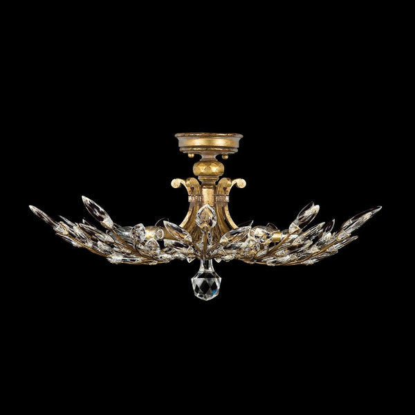 - Semi flush mount fixture in a gold / silver leaf finish featuring stylized faceted crystal leaves.