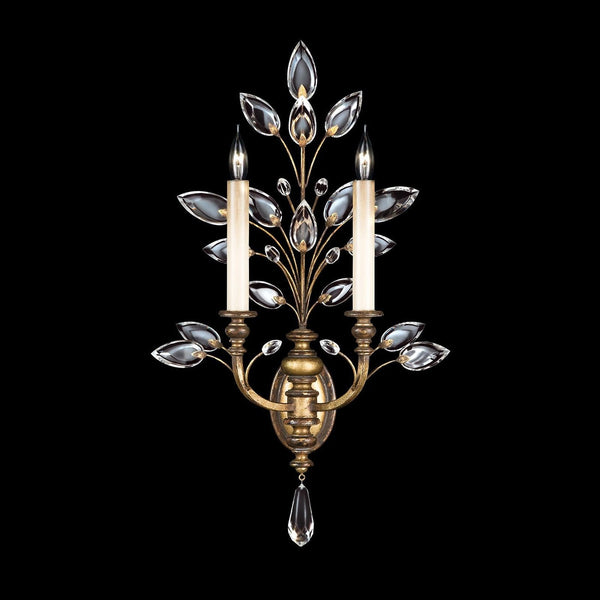 - Sconce in a gold / silver leaf finish with antiqued candlesticks featuring stylized faceted crystal leaves.