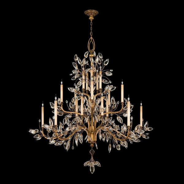 - Chandelier in a gold/silver leaf finish with antiqued candlesticks featuring stylized faceted crystal leaves.