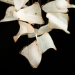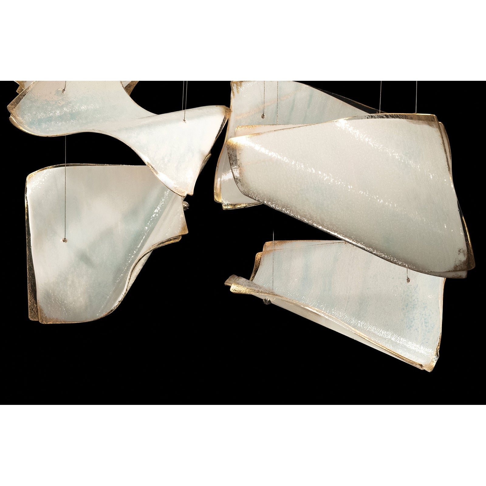 - By fusing and slumping clear and white opaline glass and hand applying gold embellishments to detail the layering of the glass, this fixture comes to life in movement and design.