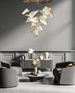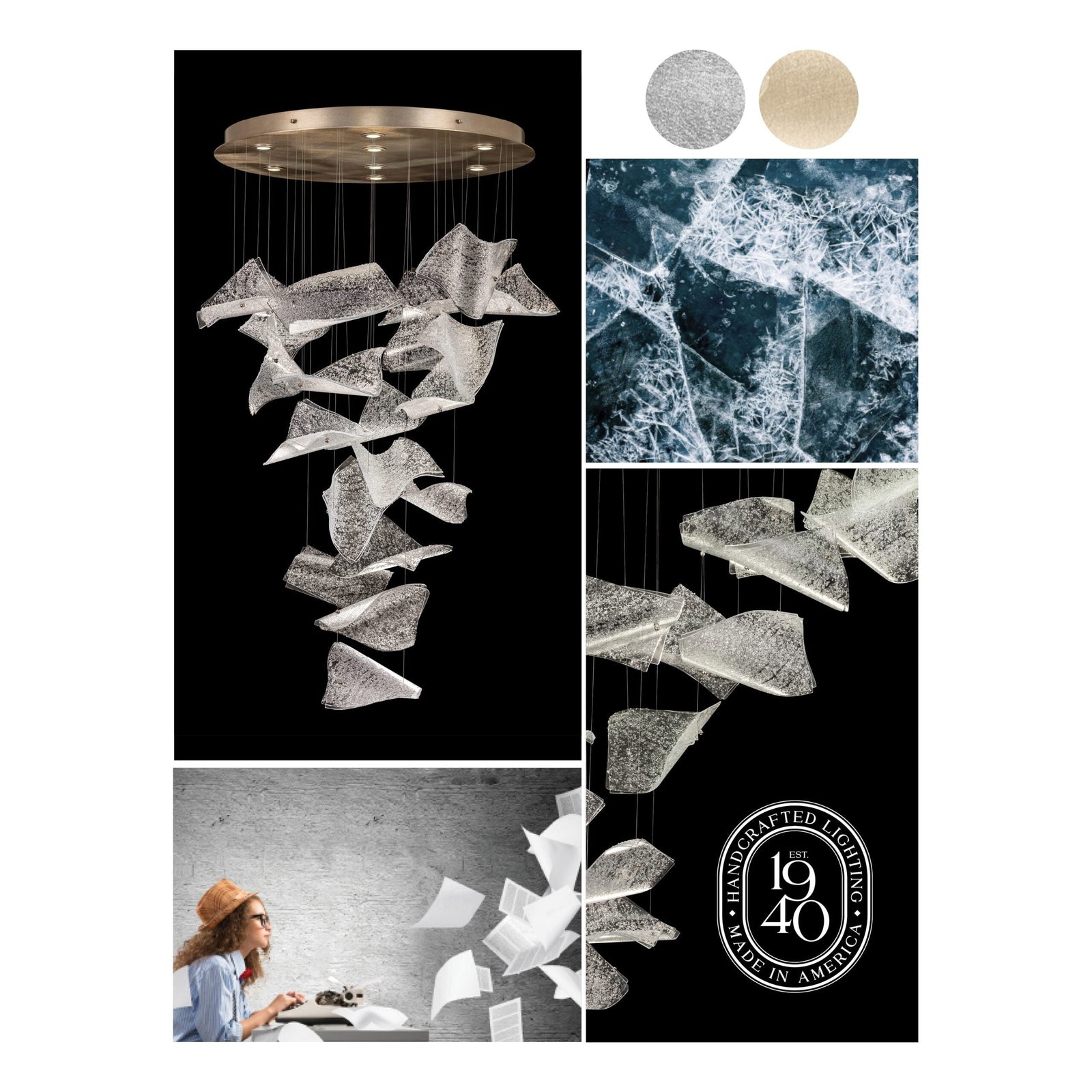 - This American handmade round fixture features 15 glass “Pages” and is ideal for low ceilings.