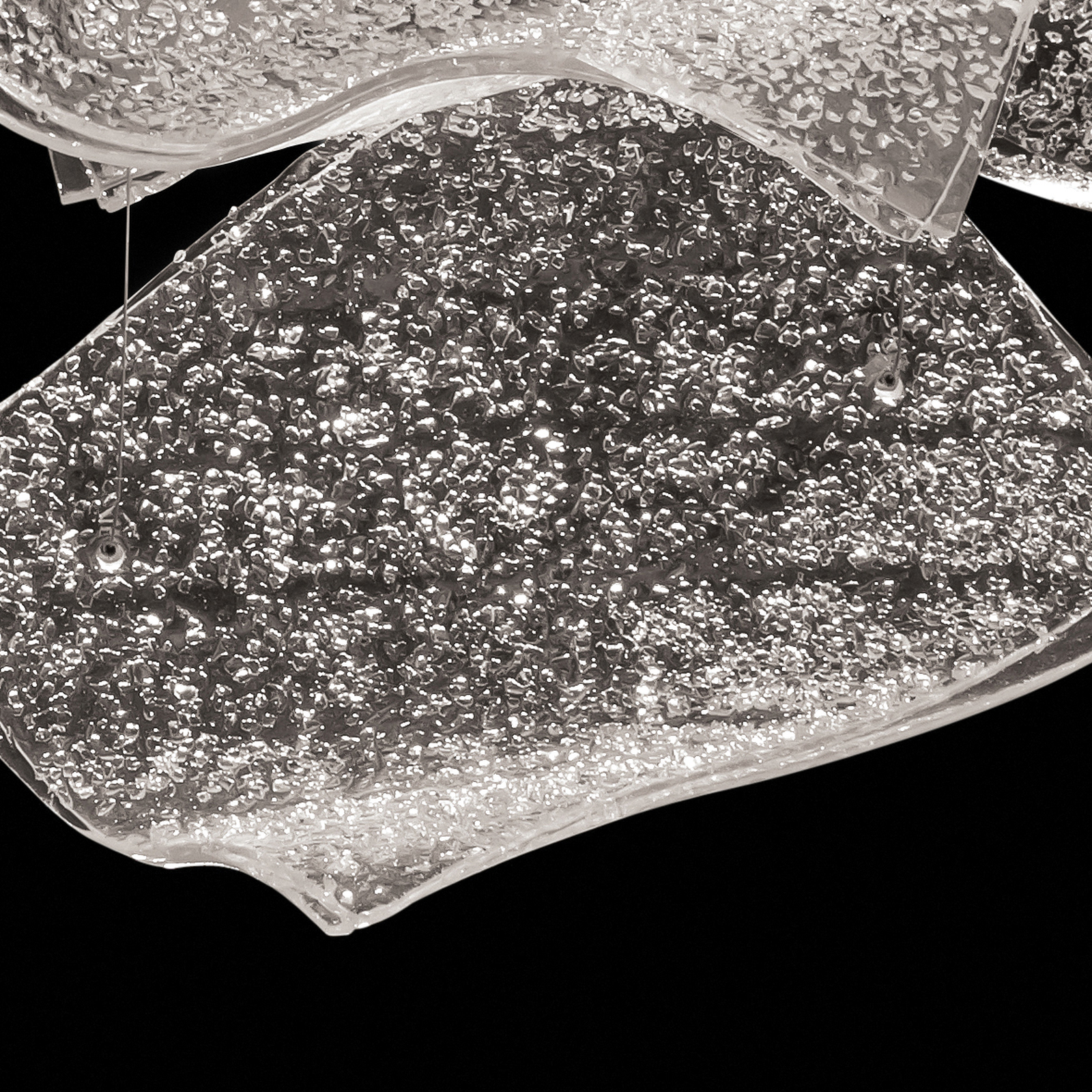 - Each “Frozen Page” is composed of two pieces of fused glass covered with a layer of crystal frit creating a frozen look.