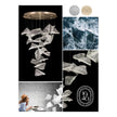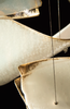 - Illuminated from a gold/silver leaf canopy and suspended by adjustable cables.