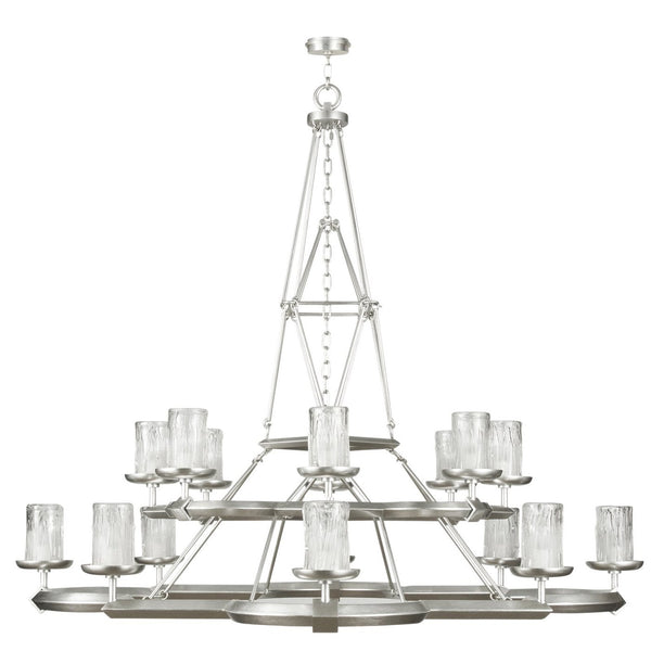 - Chandelier executed in hand-crafted metal with extensive component details and articulation, finished in a choice of platinized silver leaf or antique hand-rubbed bronze0.