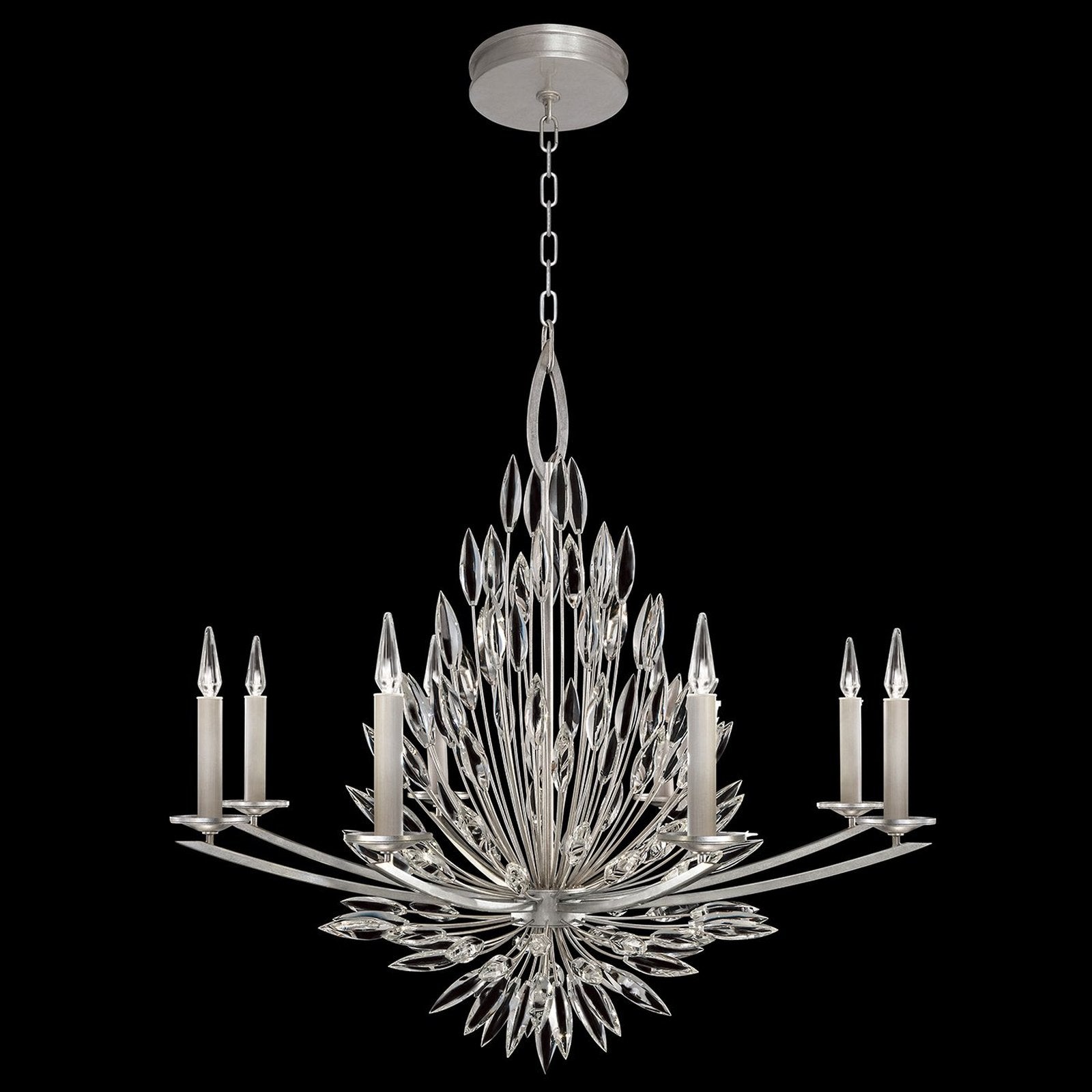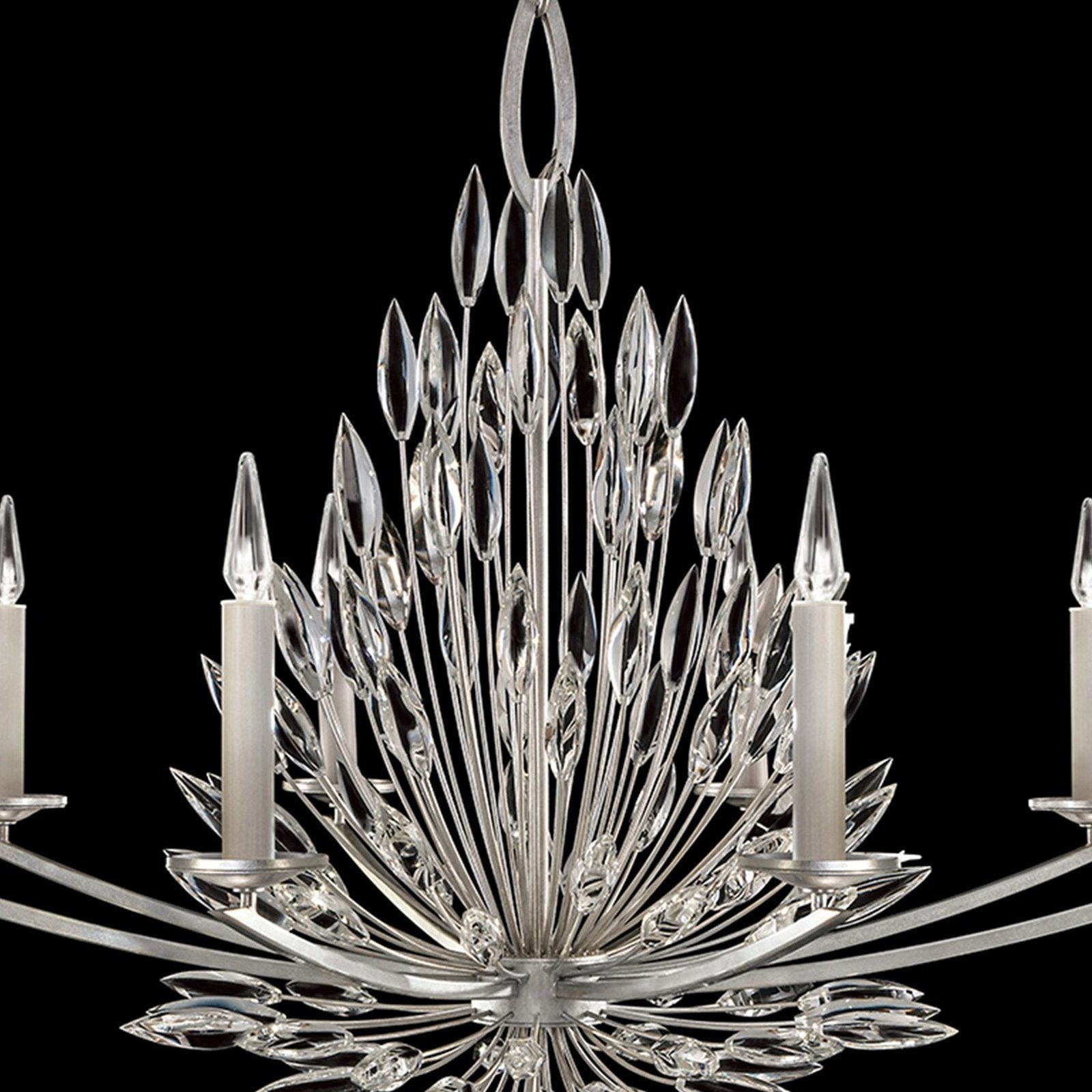 - Chandelier in gold/silve leaf finish with graceful bouquets of faceted crystal lily buds that create a naturally elegant lighting effect.