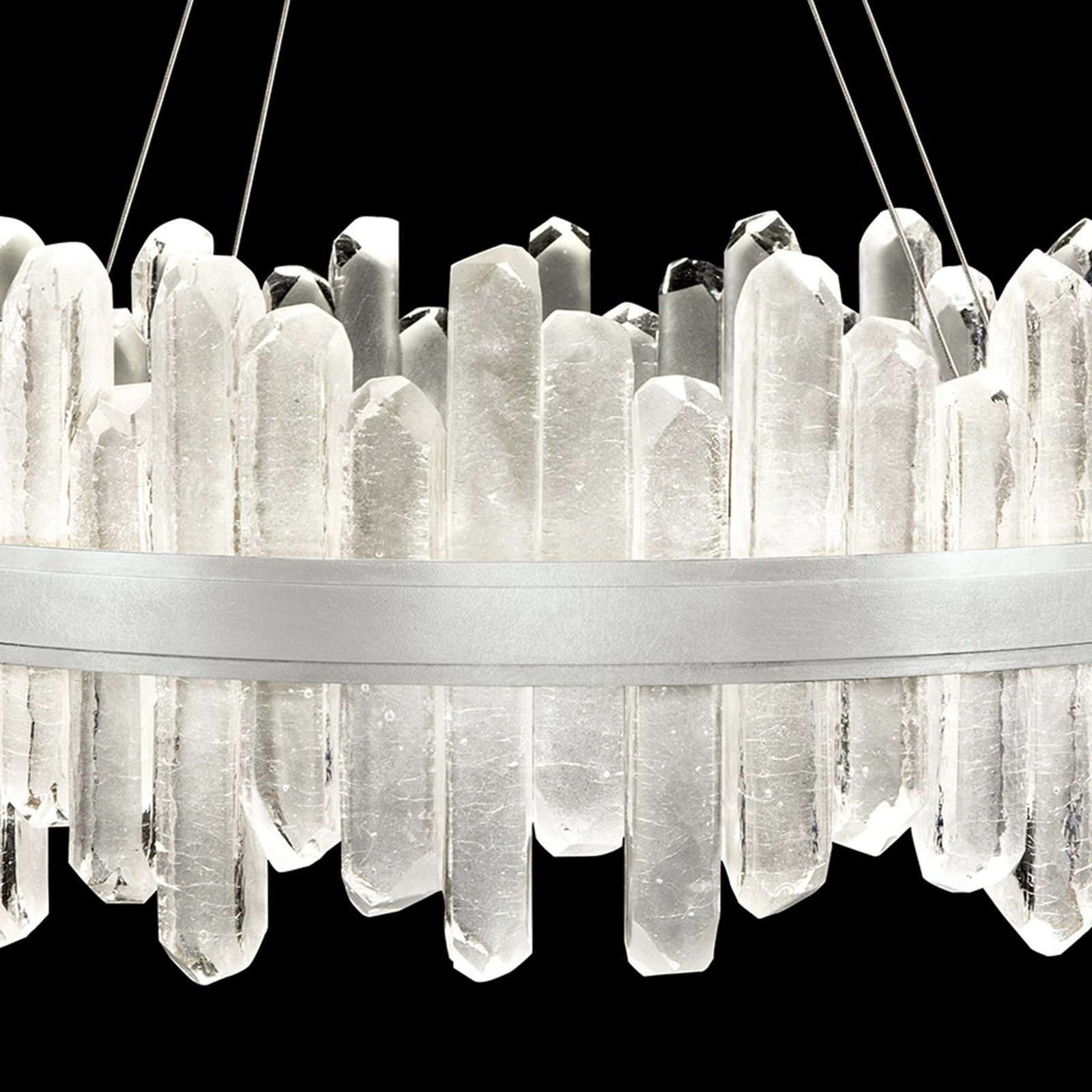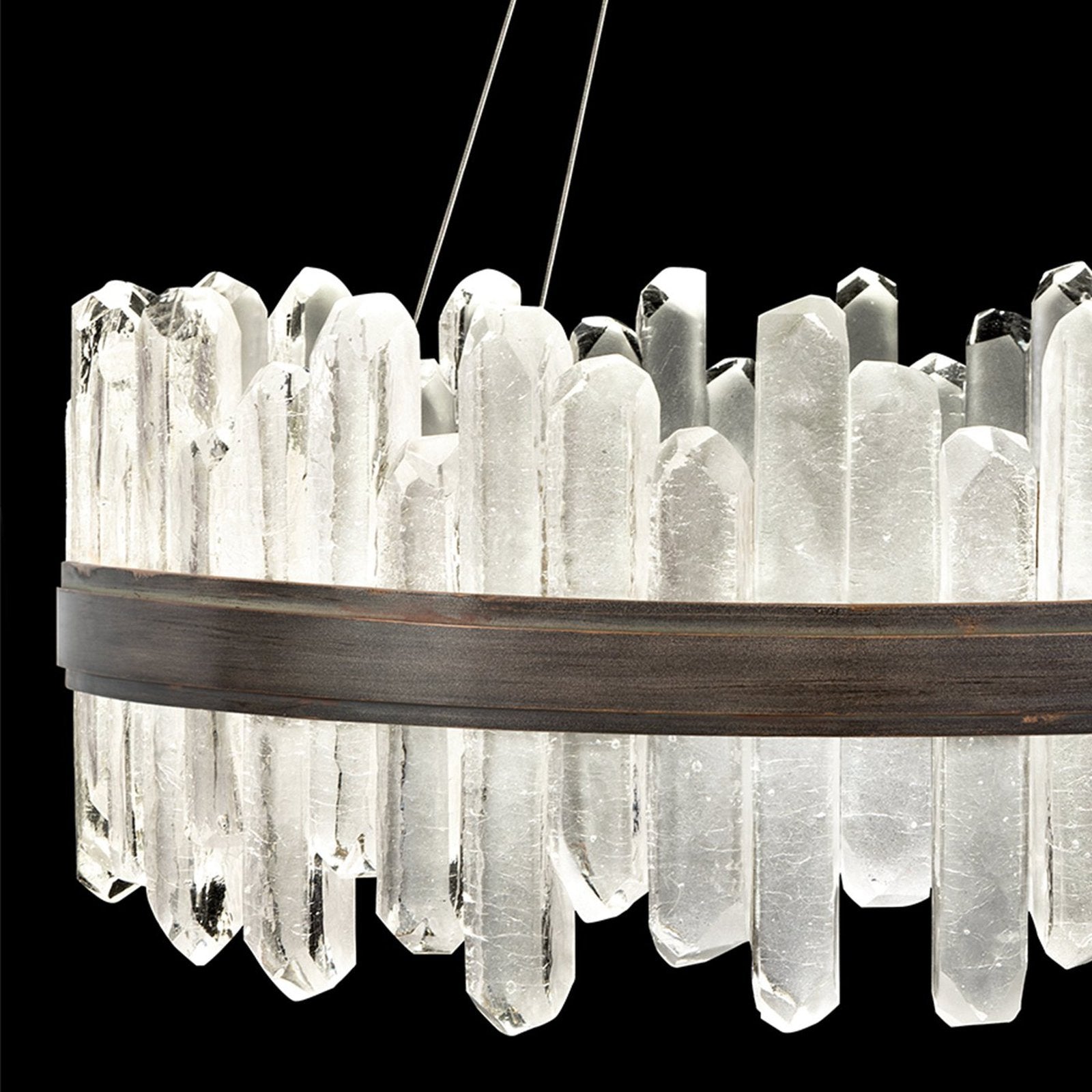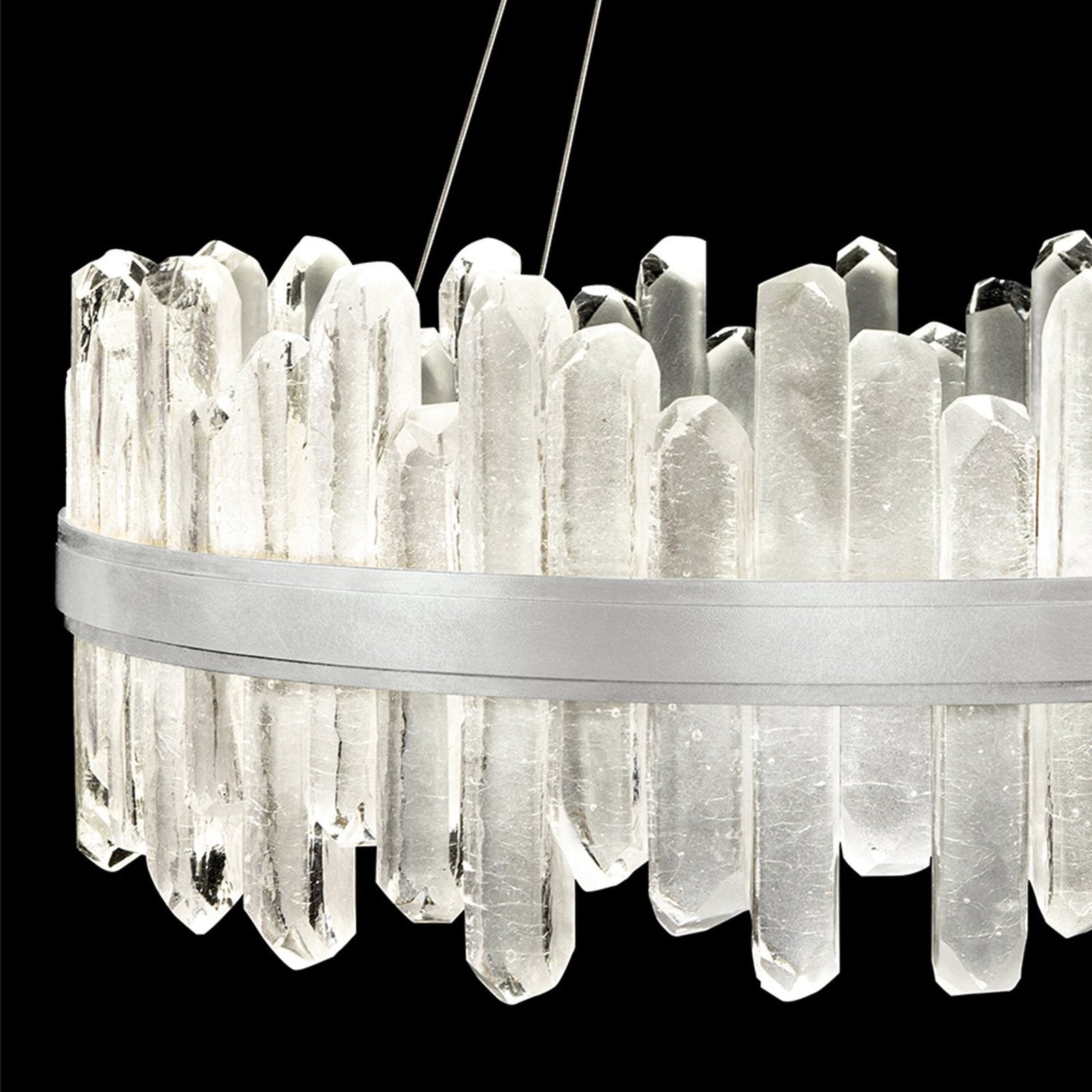 - LED pendant influenced by the ephemeral appearance of illuminated rock crystal, which has been interpreted into handmade glassworks with the collaboration of the Fine Art studio glass master craftsmen.