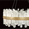 - Formed of glass spires that mimic natural crystal formations as much as they do rays of sunlight, and clean metal lines in unadorned but precious finishes.