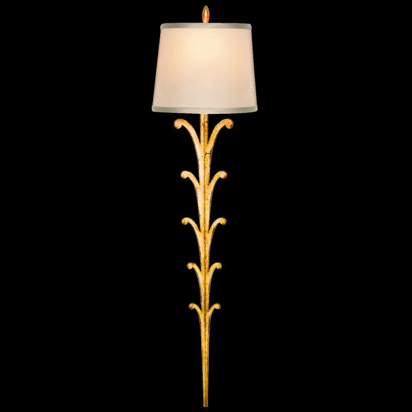 - Wall sconce with stylized leaf design in a doré gold finish/platinized silver.