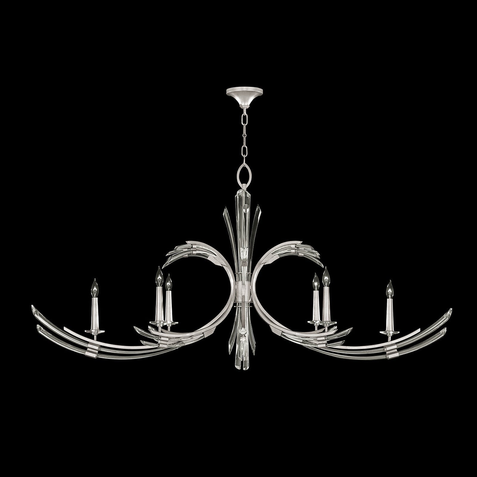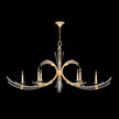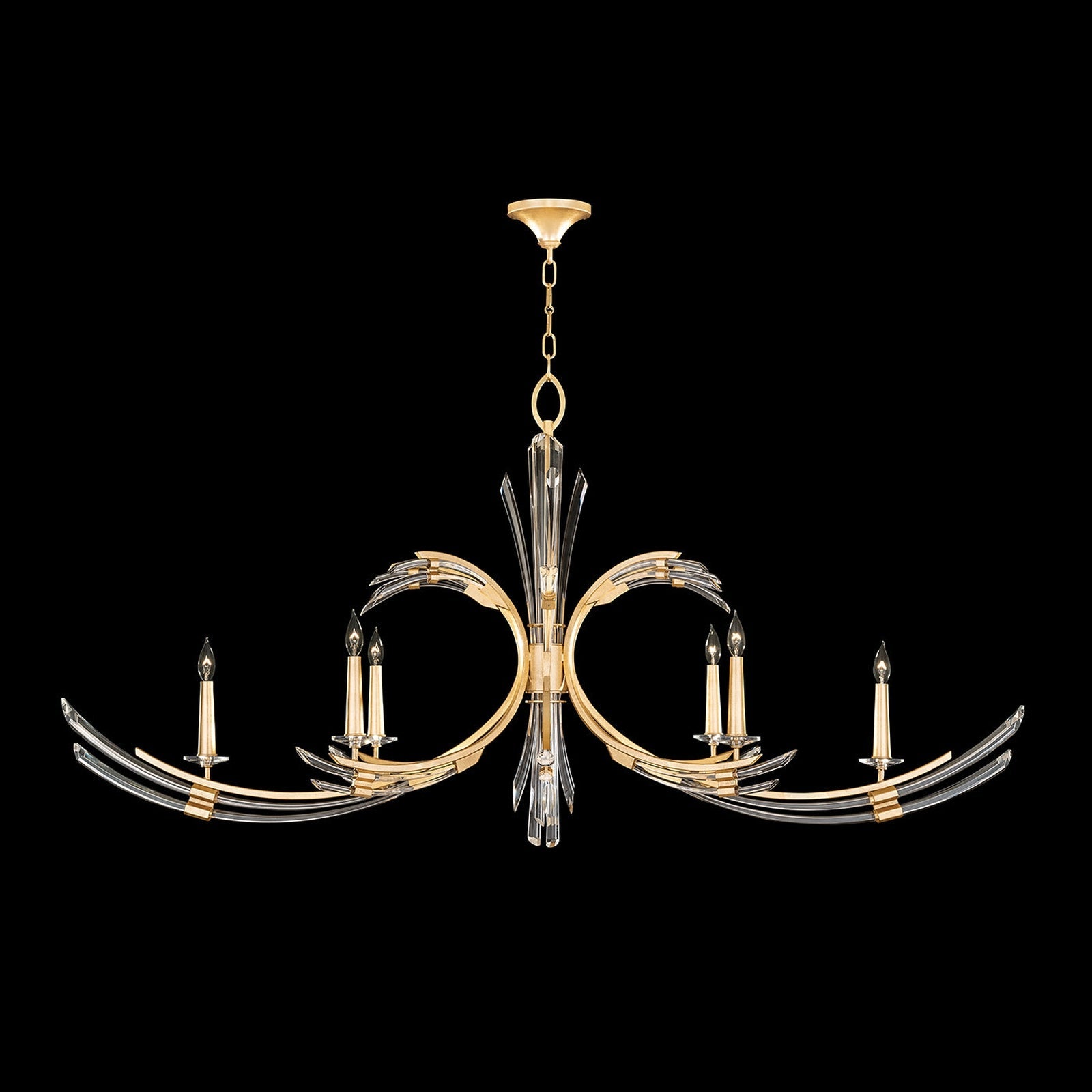 - Chandelier with gently curved hand carved crystals create fluid movement in profiles of grace and majesty.