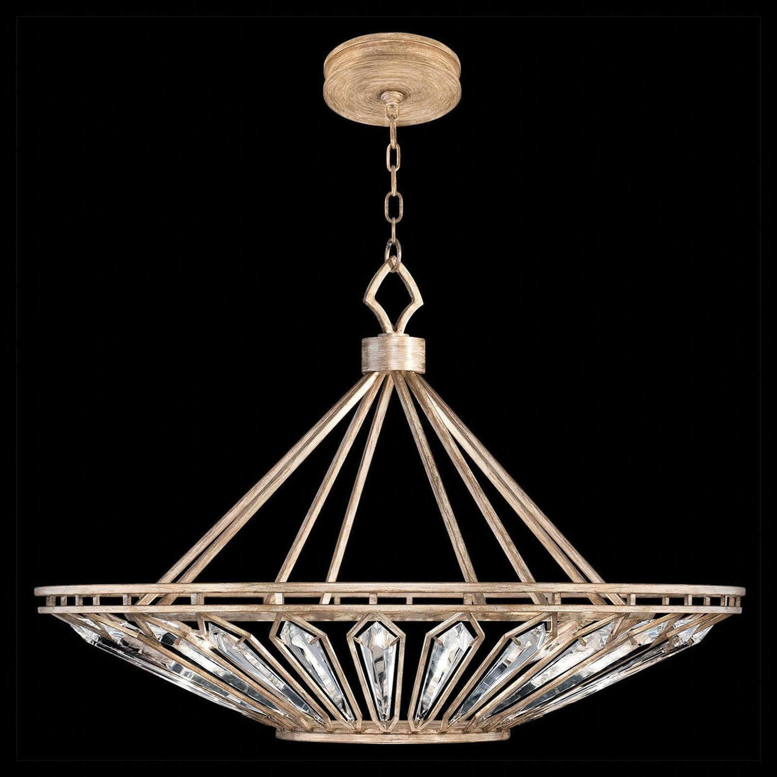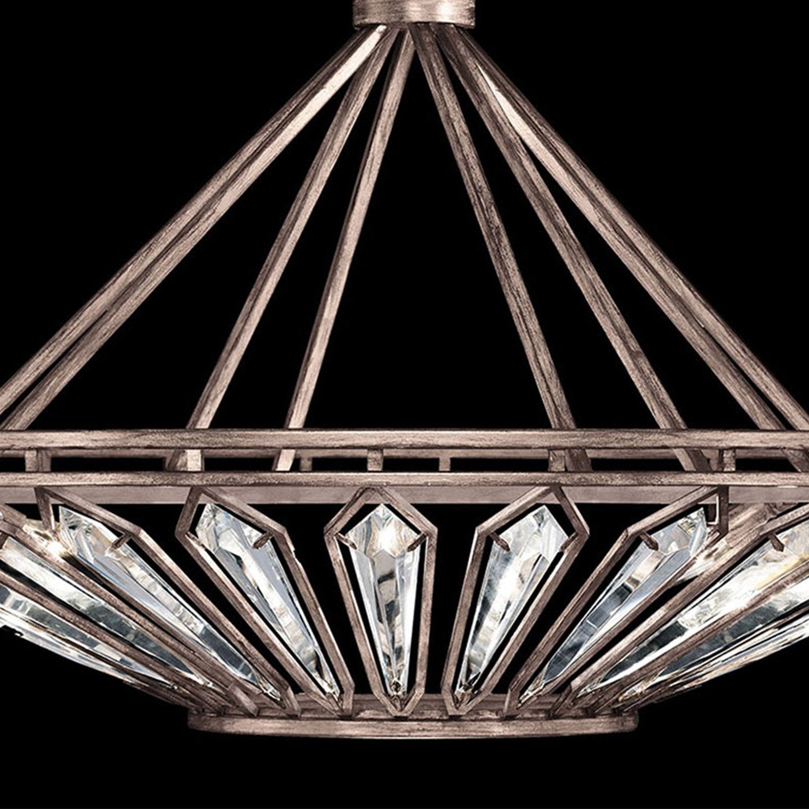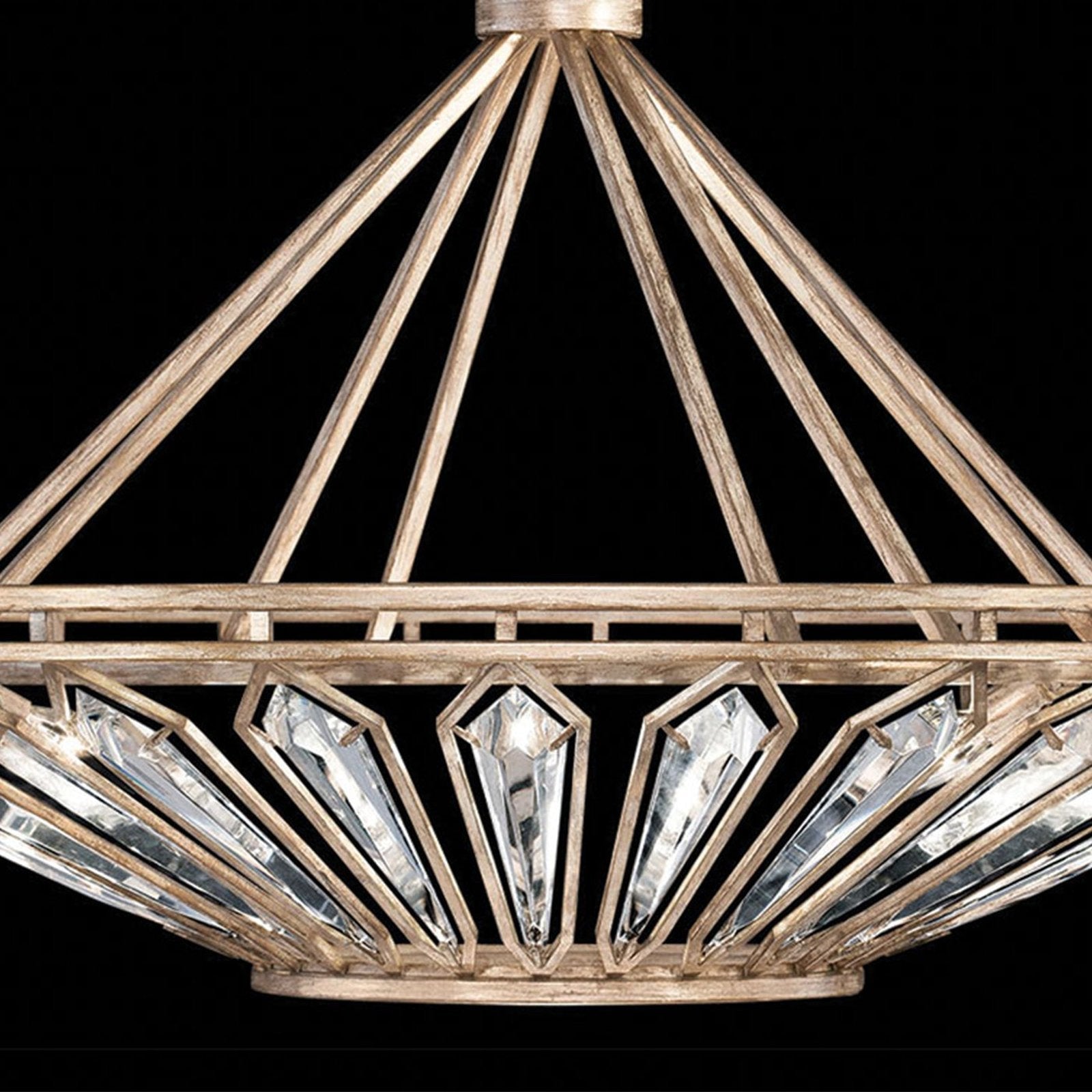 - Double-faced beveled crystals exquisitely float openly in individual metal frames.