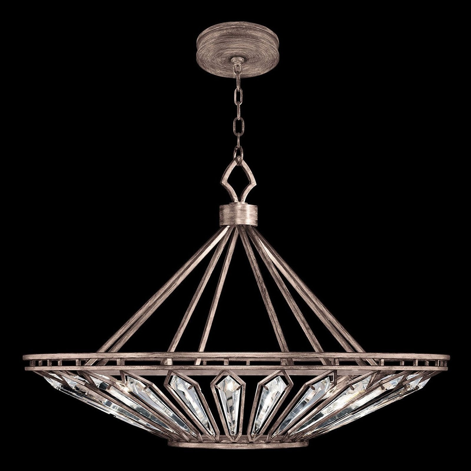 - Pendant in a warmly washed pale antique gold/softly weathered English brown iron patina with vestiges of silver thoughtfully designed to be both boldly dramatic and quietly subtle.