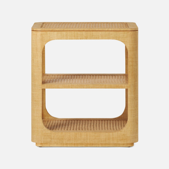 - An accommodating solihiya cane top allows light to filter through to the shelf below-framed on each side by two rounded, rectangular cutouts.
